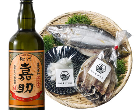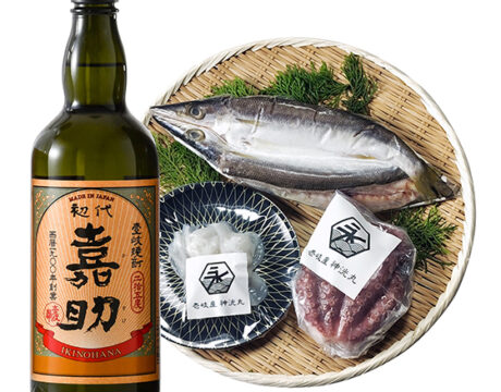 『壱岐の漁師おまかせ海鮮3種』と「初代嘉助」は同じ長崎県壱岐市で生まれた、島の風土そのものを味わうようなセットです。