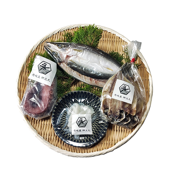 世界三大漁場の一つ、長崎県壱岐市周辺に広がる玄海灘。激しい潮流がぶつかり合うこの海で豊富なプランクトンを食べて育った魚たちは、上質な脂を蓄え、荒波に揉まれることで身が引き締まっているのが特長です。その玄界灘を知り尽くした漁師が熟練の技で引き上げた海鮮『壱岐の漁師おまかせ海鮮セット』をご用意しました。旬の時期に水揚げされたカマスは、旨みが凝縮する「カマス開き」に。身が厚く、ふっくらと焼きあがり、皮の香ばしさも相まってお酒との相性も良い逸品です。伝統漁法のタコ壺で水揚げした「たこボイル」は、網で追われなくストレスを最小限に抑えて獲るため、身の柔らかさと旨みの濃さが際立ちます。「アジの塩干し」は、身が引き締まったアジを、天日の恵みで贅沢な塩干に仕立てました。程よい塩気と熟成されたアジの濃厚な味わいは、白いご飯が止まらなくなる美味しさです。「烏賊素麺」は、一本釣りのイカを素麺仕立てに。身の締りがよく、噛むほどに濃厚な甘みが口いっぱいに広がります。