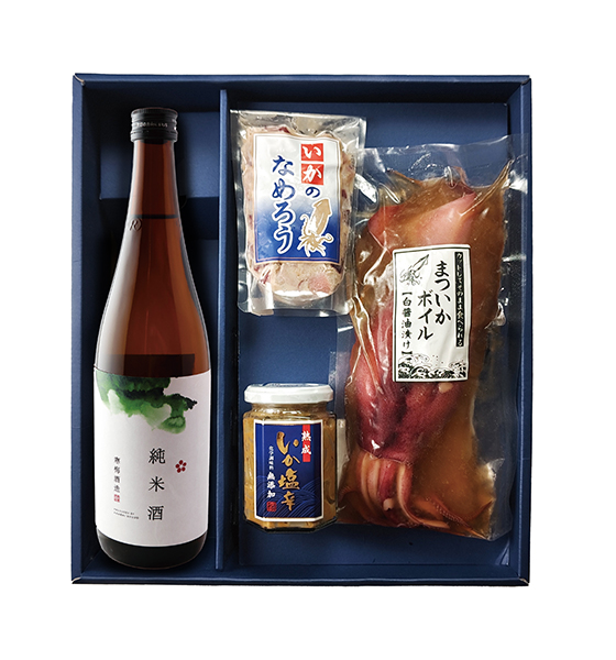 すっきりと飲みやすい『寒梅酒造 オリジナル純米酒』のおつまみに最適な『熟成いか塩辛・マツイカボイル白醤油漬・いかのなめろう』のセットは、日本酒好きな方へはもちろん、日頃お世話になっている方、大切な方への贈り物におすすめです。