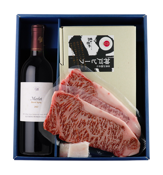 『メルロ樽熟成/神戸牛サーロインステーキ』のセットは、特別な日の食卓を心満たされる贅沢な時間へと演出してくれます。ご自宅で祝う記念日のディナー、大切な方やワイン好きの方への贈り物におすすめです。ぜひこのマリアージュをご堪能ください。