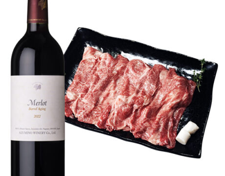 安曇野ワイナリー メルロ樽熟成/神戸牛肩ロースすきやき