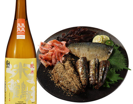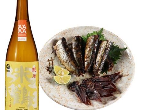 甘めな味付けのさんまといわしの佃煮に、なめらなコクとやや辛口な純米酒で後味を引き締めるペアリングセット
